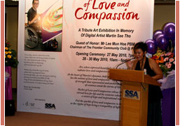 This exhibition was a tremendous success with more than 1300 visitors from Singapore and abroad. 82 pieces of Martin’s art-works were sold at this tribute art exhibition. In his name, all the proceeds generated from these sales have been donated equally to four charitable organisations.